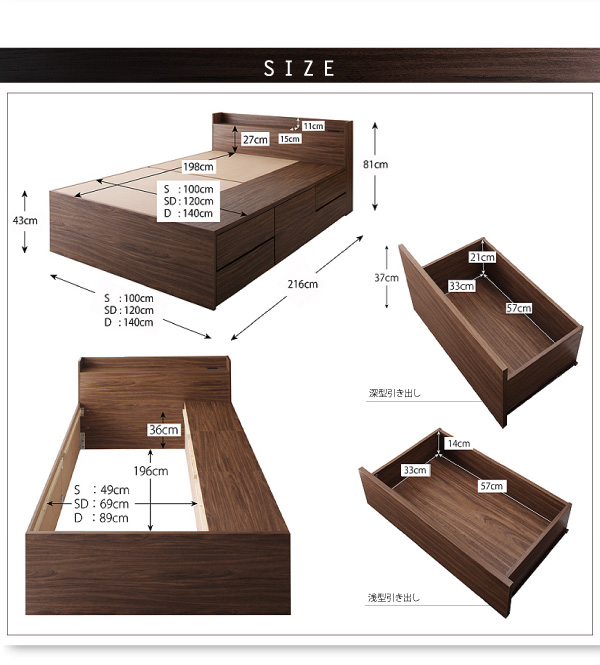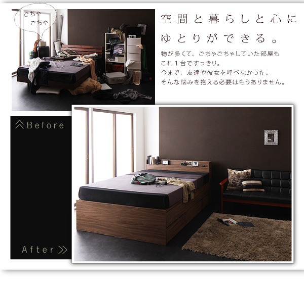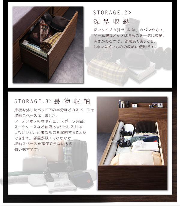 - チェストベッド シングル【Divatos】【ボンネルコイルマットレス:レギュラー付き】 フレームカラー:ウォルナットブラウン マットレスカラー:ブラック 棚・コンセント付きチェストベッド 【Divatos】ディバート