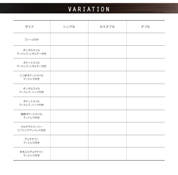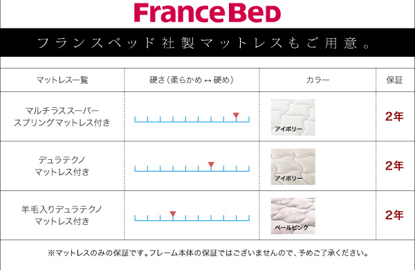 こちらの商品のフレームをご使用になる場合は、床板の上に必ずスプリングマットレスを敷いてご利用くださいますよう、お願い申し上げます。