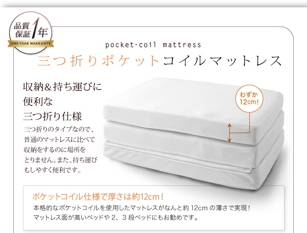 普通のチェストベッドだと、高さがあって一般的には三つ折りのような寝心地のあまり良くない