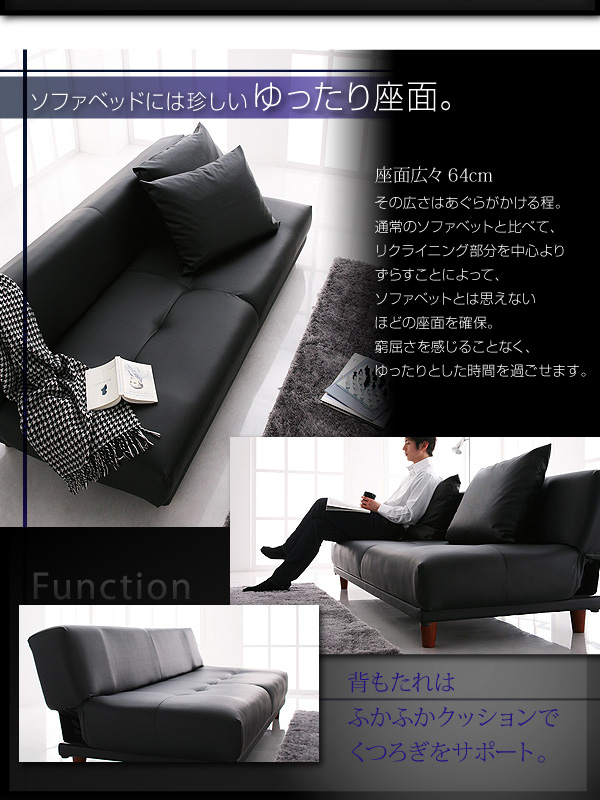 ■ソファベッドにはめずらしい、ゆったり座面。