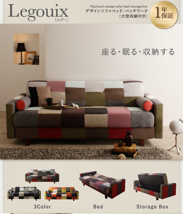 デザインソファベッド・パッチワーク(大型収納付き)【Legouix】ルグ―