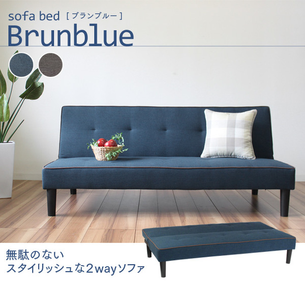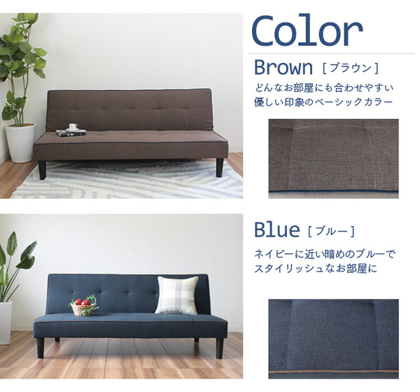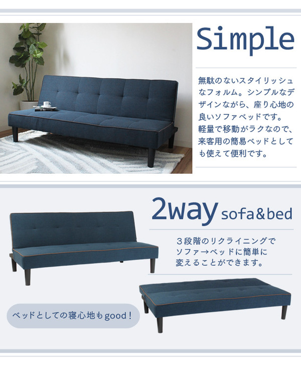 - ソファーベッド 【3人掛け】 ファブリック布地 軽量 ブルー(青)