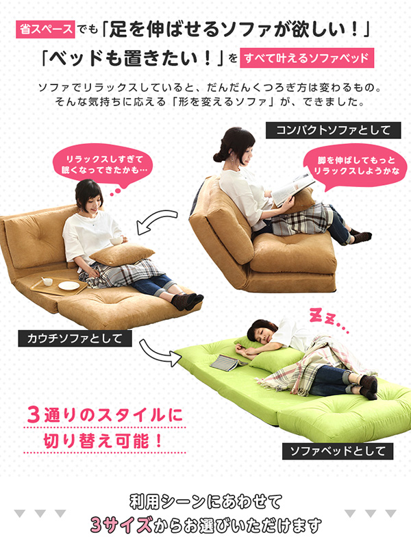 ソファ・カウチ・ベットの3通りが楽しめる3wayソファベッド!