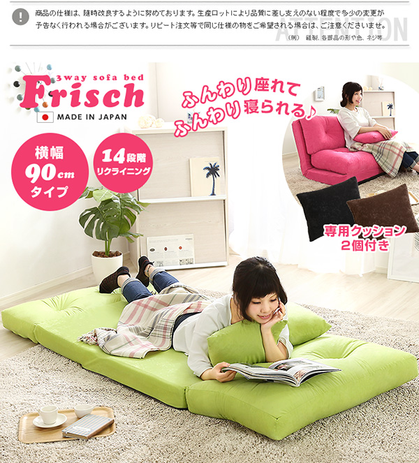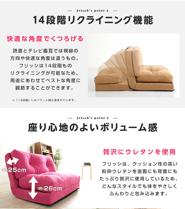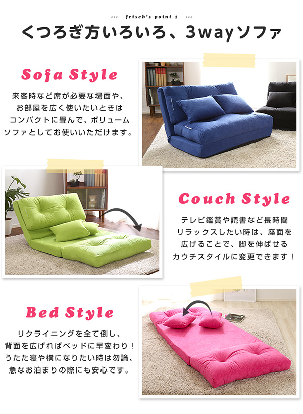 3wayソファベッド【frisch-フリッシ-】(コンパクト フロア リクライニング スエード 2人掛け)
