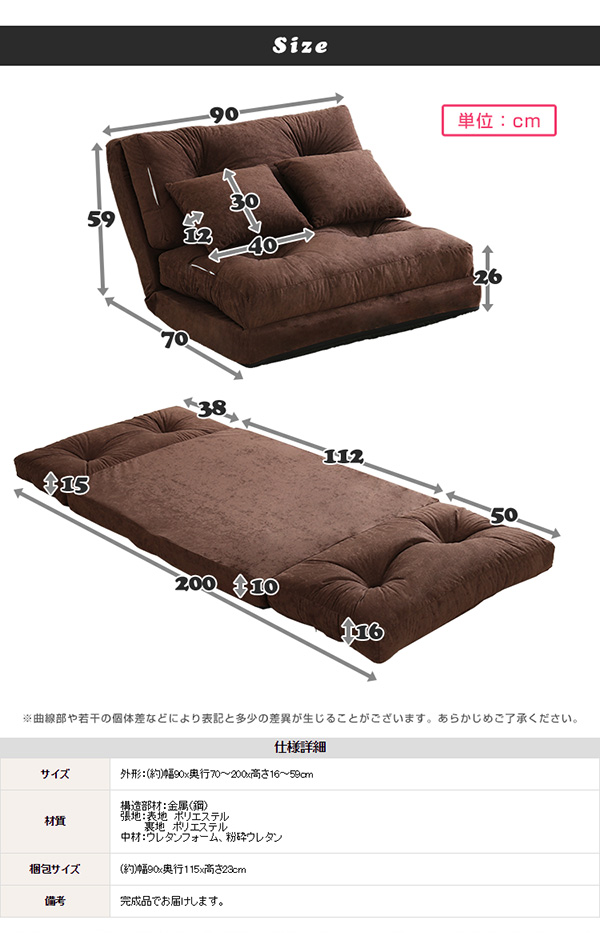 外寸:(約)幅90x奥行70〜200x高さ16〜59cm